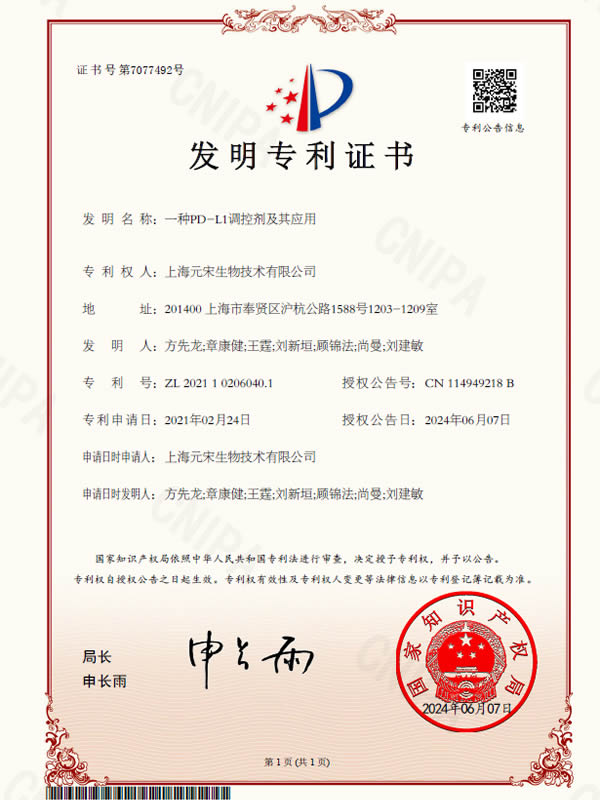 ZL200510026151.5授权证书-肿瘤靶向基因-病毒ZD55-IL-24及其构建方法和应用