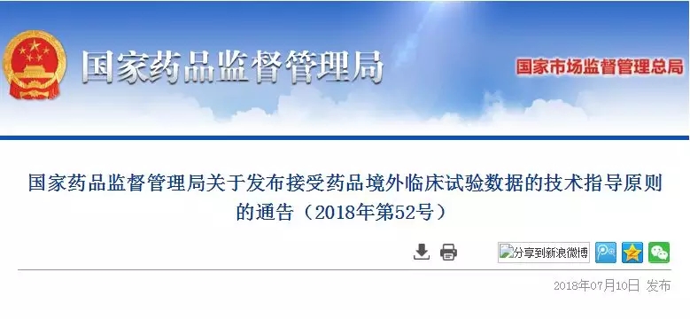 为进一步落实《关于深化审评审批制度改革鼓励药品医疗器械创新的意见》(厅字〔2017〕42号),发布《接受药品境外临床试验数据的技术指导原则》(以下简称《指导原则》)。